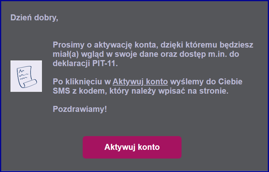 Jednocześnie wysyłana jest wiadomość na numer telefonu komórkowego podanym na koncie.