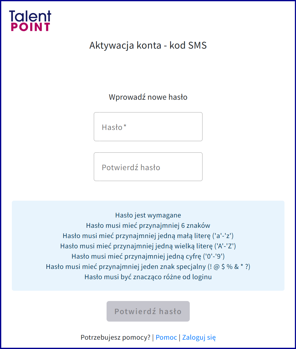 9. Wymyśl hasło, przy pomocy którego będziesz logować się do platformy TalentPoint.